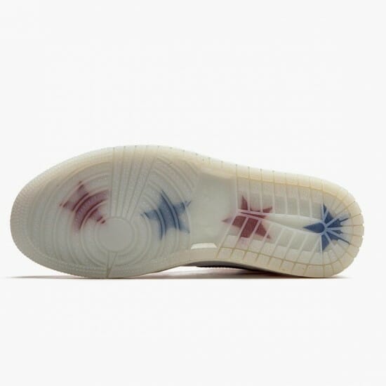 The Air Jordan 1 High Trophy Room Chicago features a white midsole and translucent outsole with red and blue stars beneath the arch. This design element adds a subtle touch of color to the shoe while also providing excellent traction on the court or the street.