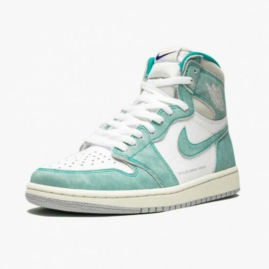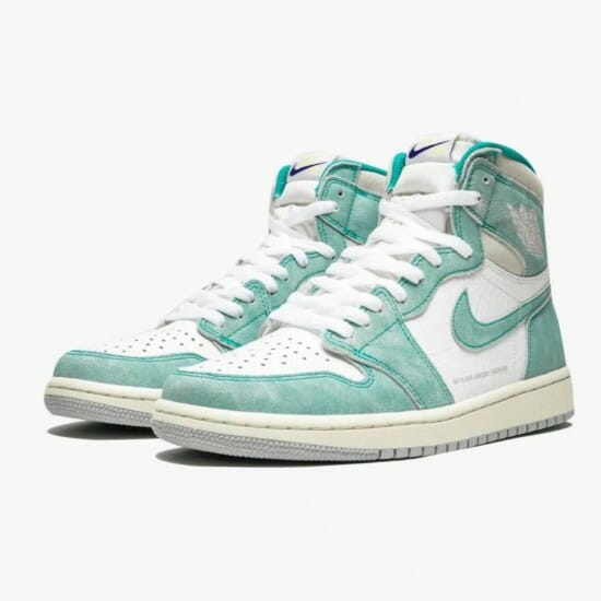 The Air Jordan 1 High “Turbo Green” is a unique colorway for the classic Michael Jordan signature shoe that released as part of the 2019 NBA All-Star collection from Jordan Brand. The washed leather upper in Turbo Green and white pays tribute to the classic Charlotte Hornets team colors, the host team for the 2019 All-Star game, and gives the shoe a vintage look. A gold and purple logo is found on the tongue, and alternate purple laces are included to add to the Hornets vibe.