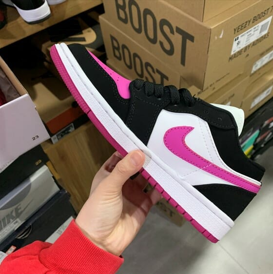 The Air Jordan 1 Low Cactus Flower is versatile and can be paired with a variety of outfits. It can be worn with jeans, shorts, or even a dress, making it a stylish addition to any sneaker collection. The pink and green accents on the sneaker add a pop of color to any outfit, making it a statement piece.