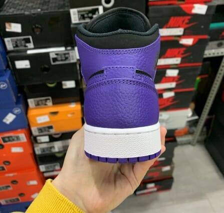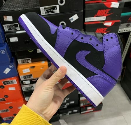The black and purple colorway of the Air Jordan 1 Mid Black Purple is a unique twist on the classic Jordan 1 color scheme. The black base is accented with pops of purple on the Swoosh, ankle collar, and outsole. The midsole is also black, giving the shoe a cohesive and sleek look.