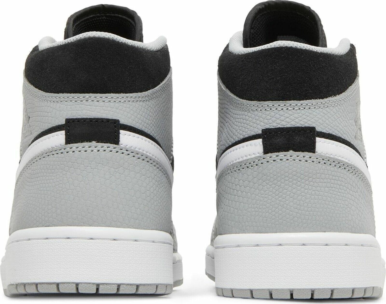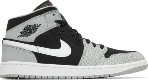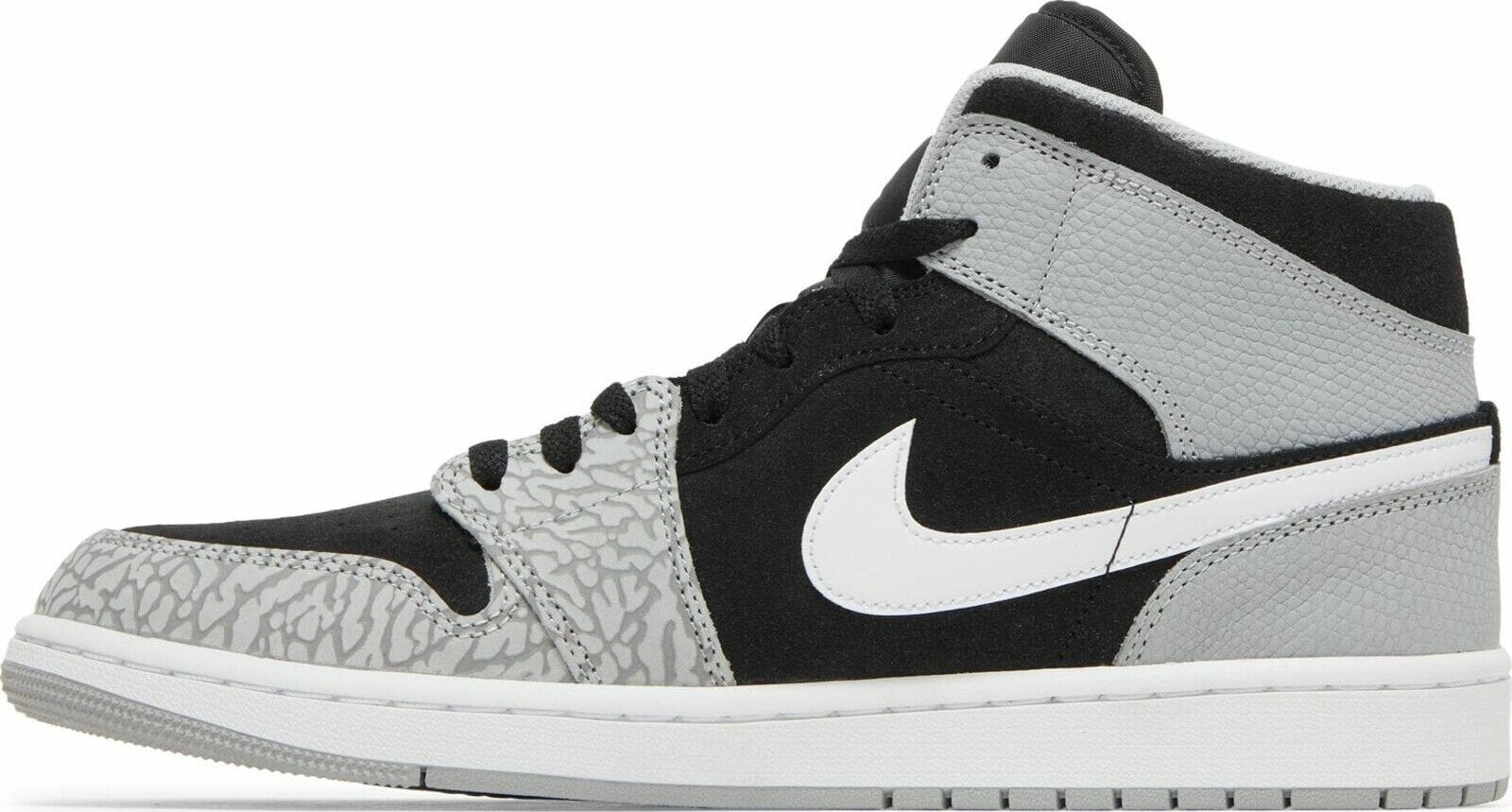The Air Jordan 1 Mid SE Elephant Toe Grey is designed with a grey and black colorway, featuring an elephant print texture on the toe and heel overlays. This unique design element adds a touch of sophistication to the shoe’s overall appearance. The shoe is finished with a white midsole and black outsole, providing a perfect contrast to the grey and black upper.