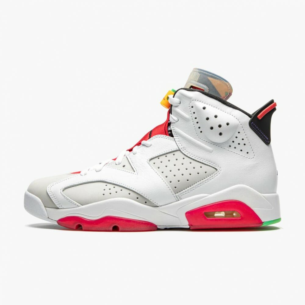 The Air Jordan 6 Retro “Hare” delivers an understated take on the classic silhouette with a championship pedigree. Monochromatic grey coloring is applied to the suede upper, appointed with traditional AJ6 details that include lace locks, perforated inlays and an extended spoiler at the heel. A two-tone midsole, finished in contrasting white and True Red tones, is supported by a translucent rubber outsole underfoot.