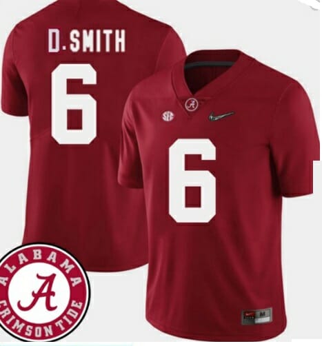 Celebrate your football fandom with this ncaa football jersey ! This Alabama Crimson Tide #6 DeVonta Smith College NCAA Football Jersey Red is available in various size men, women and youth and features a combination of stitched-embroidery. You’ll look just like your favorite ncaa football players when you rock this ncaa football jersey!