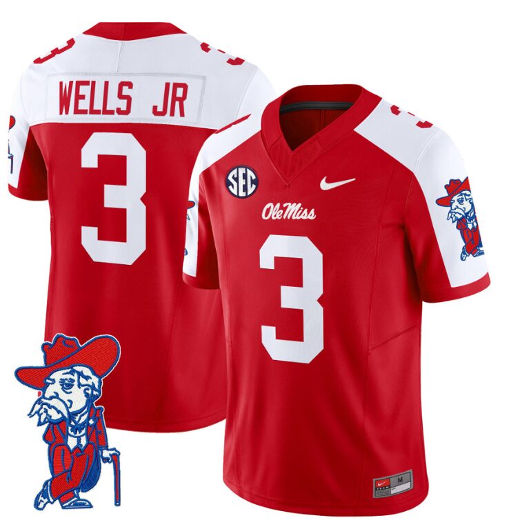 Antwane Wells Jr Jersey #3 Ole Miss Rebels Vapor Limited College Football Stitched Red Alternte