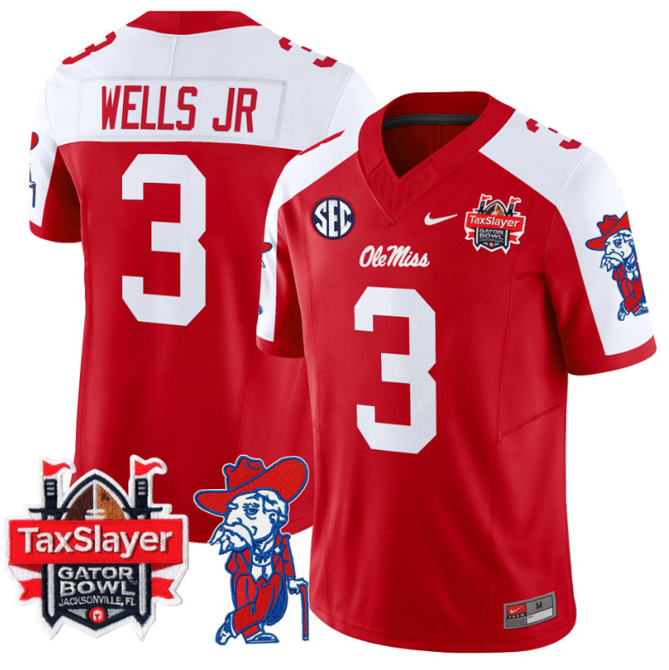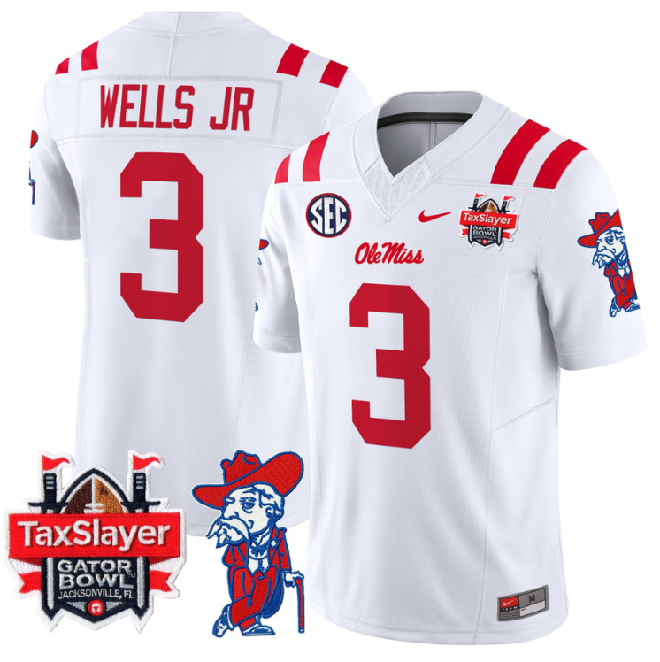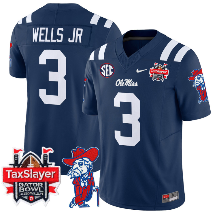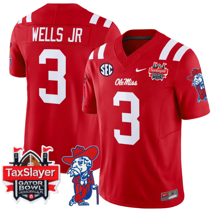 Antwane Wells Jr Jersey #3 Ole Miss Rebels 2025 Gator Bowl Patch Stitched Football