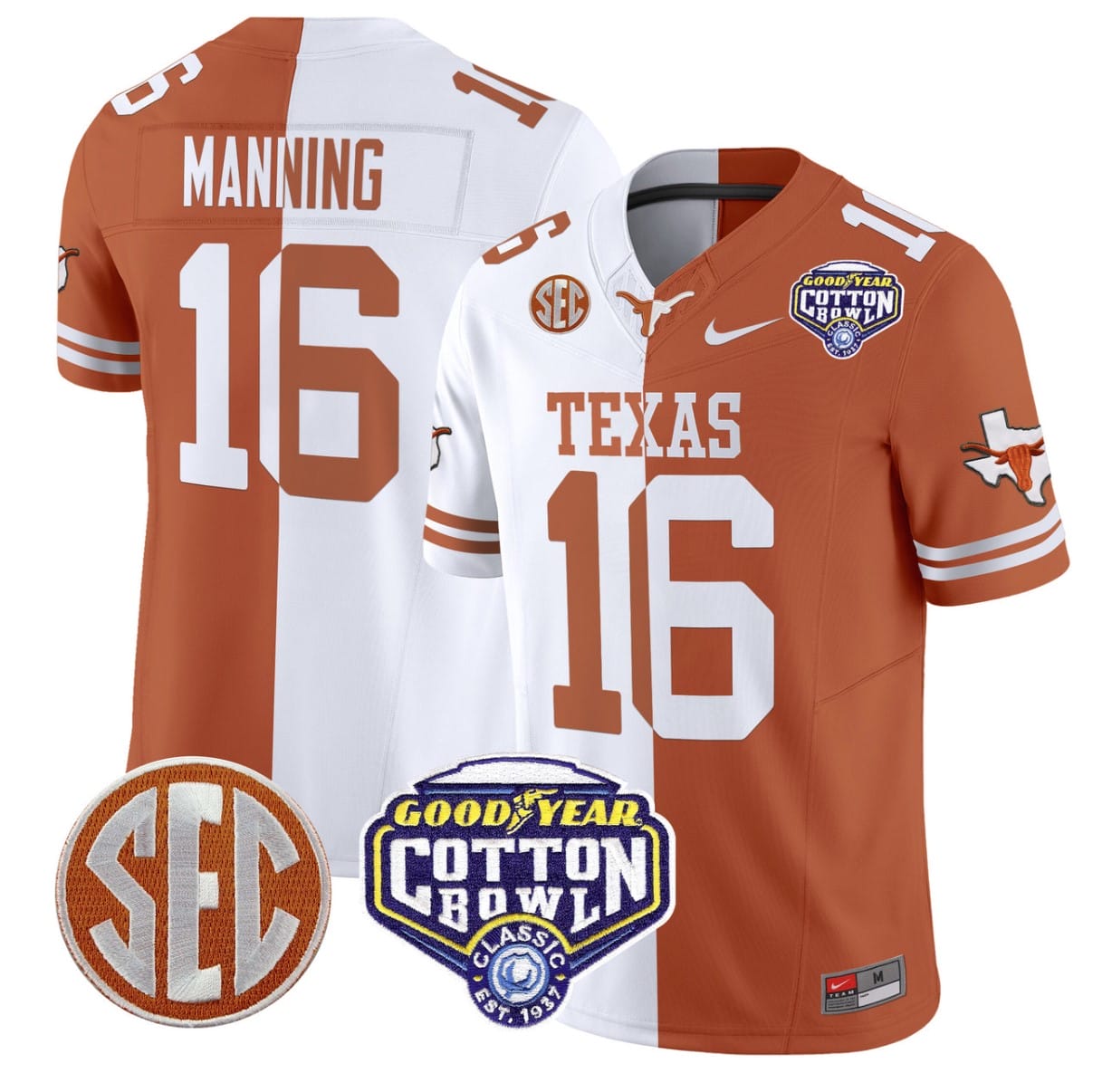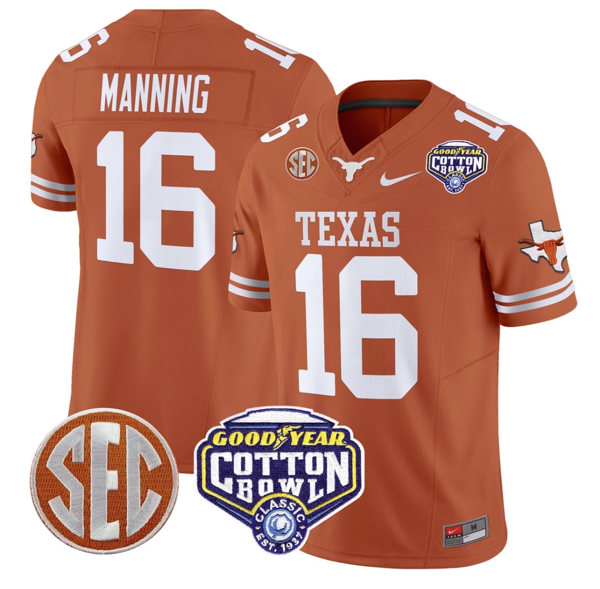 Arch Manning Jersey #16 Texas Longhorns Cotton Bowl Patch Stitched Football