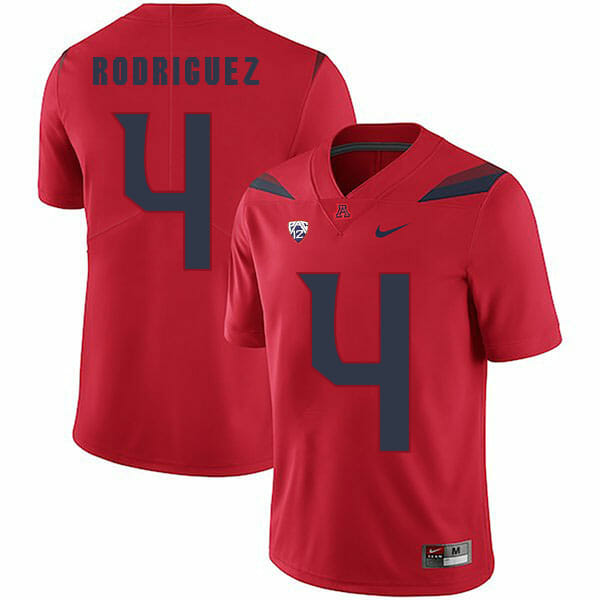 Celebrate your football fandom with this ncaa football jersey ! This Arizona Wildcats #4 Rhett Rodriguez NCAA College Football Jersey Red is available in various size men, women and youth and features a combination of stitched-embroidery. You’ll look just like your favorite ncaa football players when you rock this ncaa football jersey!