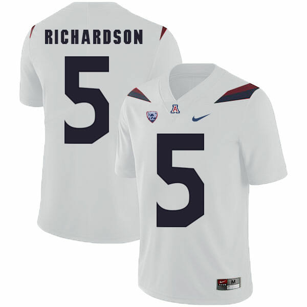 Celebrate your football fandom with this ncaa football jersey ! This Arizona Wildcats #5 Shaquille Richardson NCAA Football Jersey White is available in various size men, women and youth and features a combination of stitched-embroidery. You’ll look just like your favorite ncaa football players when you rock this ncaa football jersey!