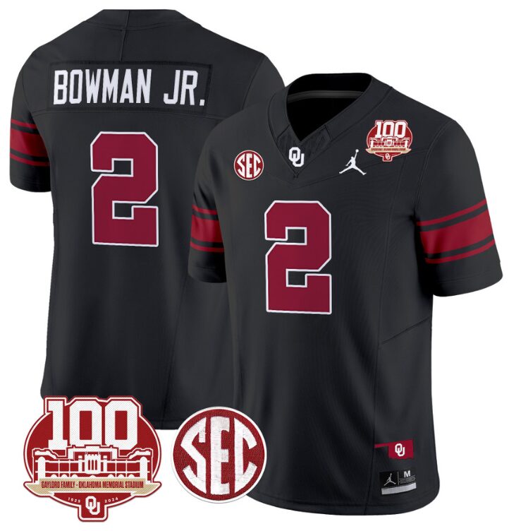 Billy Bowman Jr Jersey #2 Oklahoma Sooners 100th Anniversary Patch Vapor Limited College Football Stitched Black