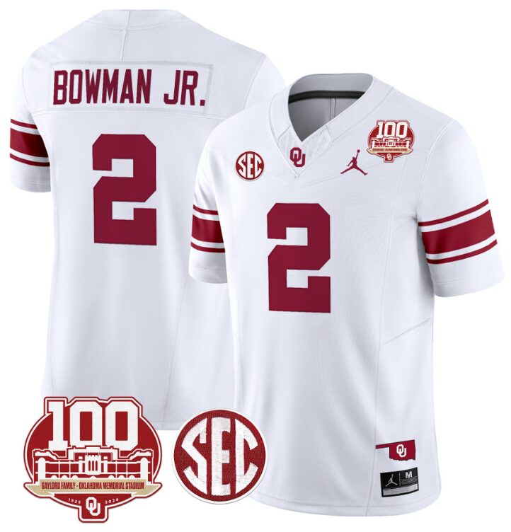 Billy Bowman Jr Jersey #2 Oklahoma Sooners 100th Anniversary Patch Vapor Limited College Football Stitched White