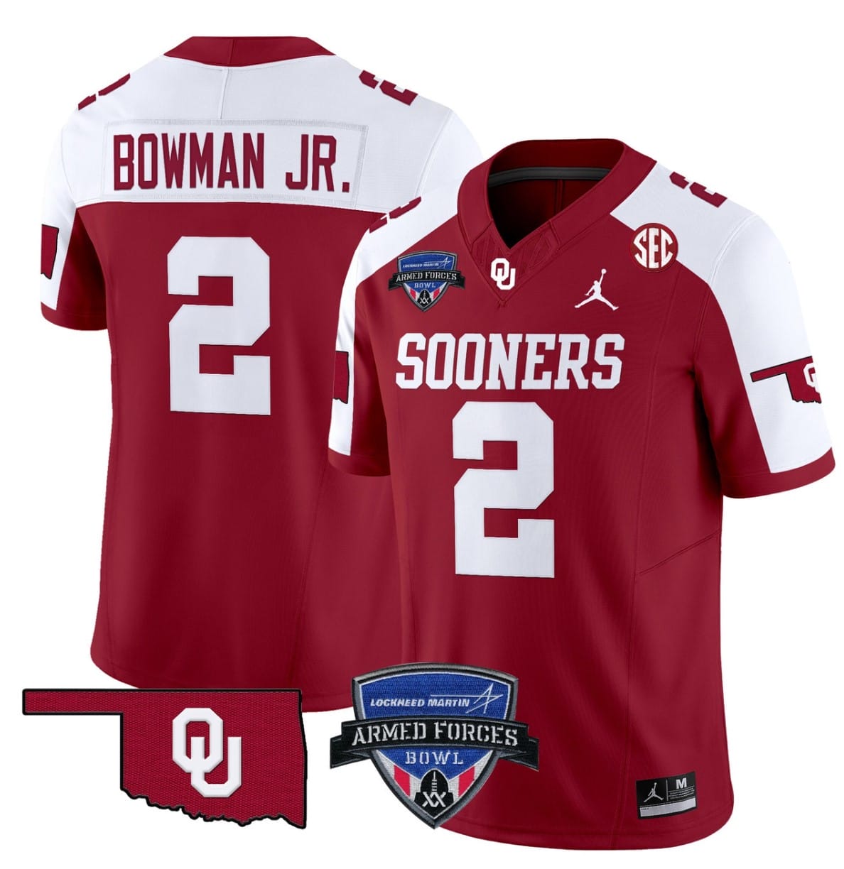 Billy Bowman Jr Jersey #2 Oklahoma Sooners 2025 Armed Forces Bowl Patch Stitched Football