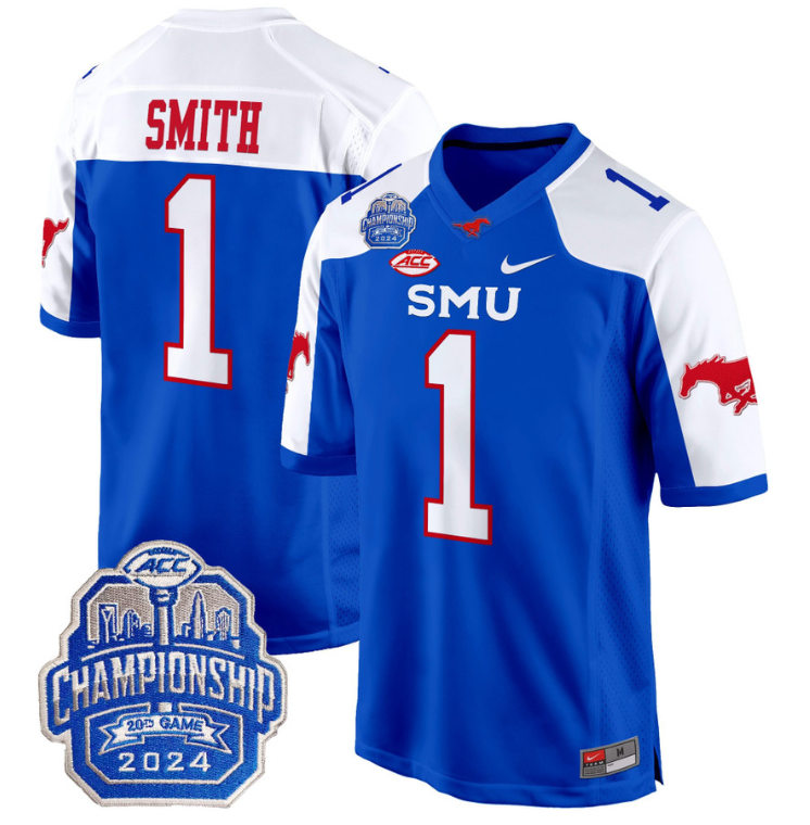 Brashard Smith Jersey #1 SMU Mustangs 2024 ACC Championship Patch Stitched Football