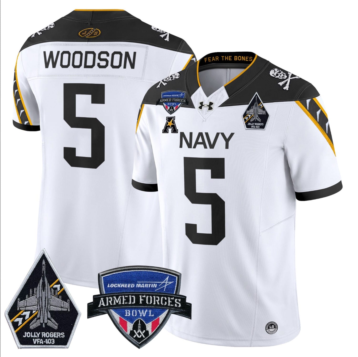 Braxton Woodson Jersey #5 Navy Midshipmen 2025 Armed Forces Bowl Patch Stitched Football