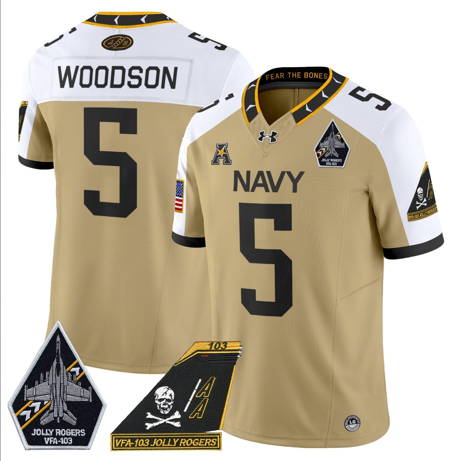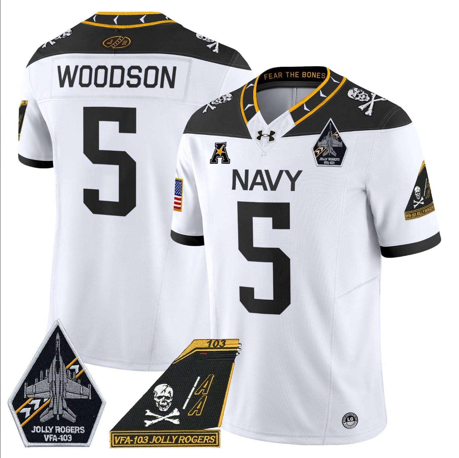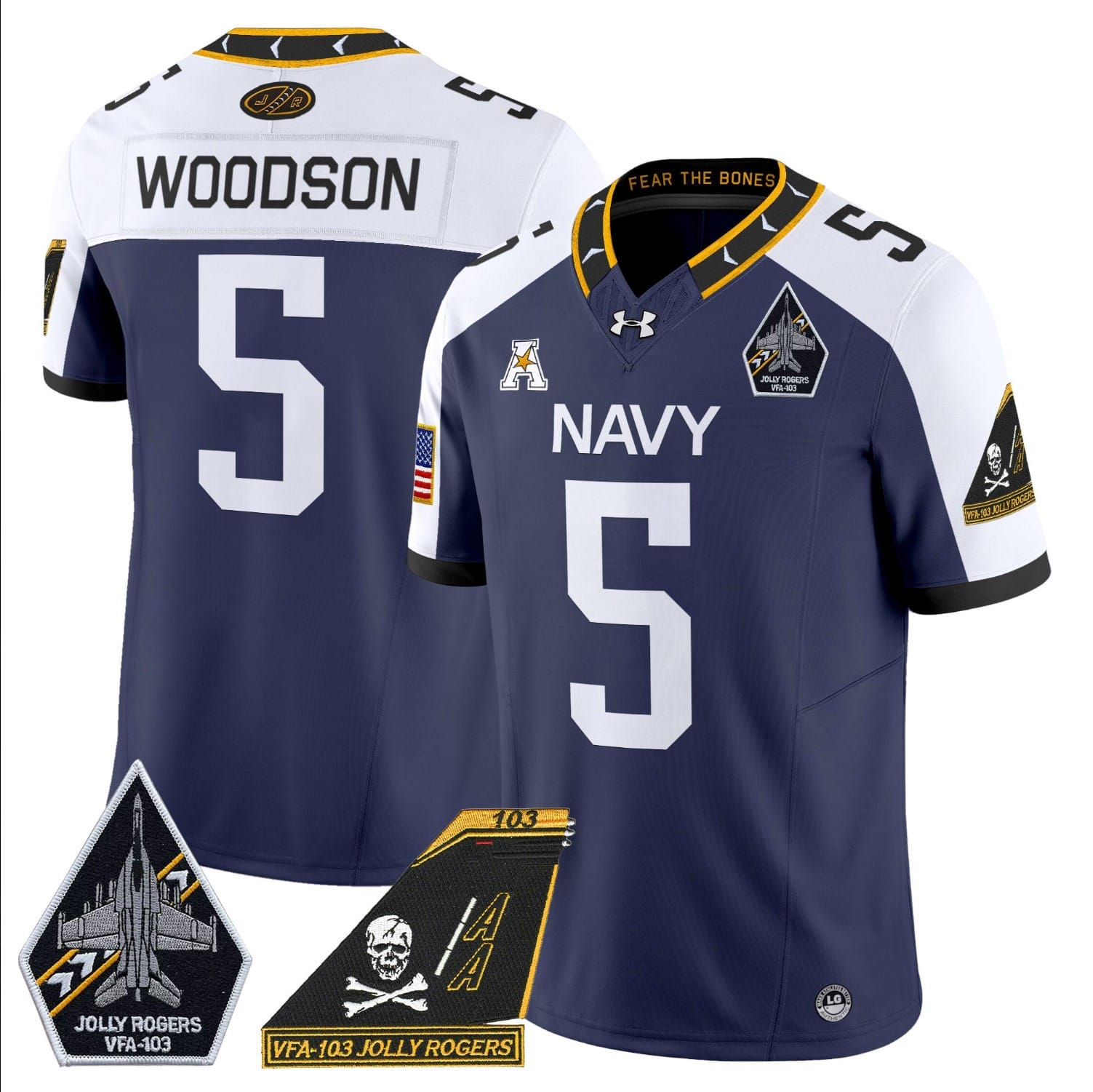 Braxton Woodson Jersey #5 Navy Midshipmen 2024 Jolly Rogers Patch Stitched Football