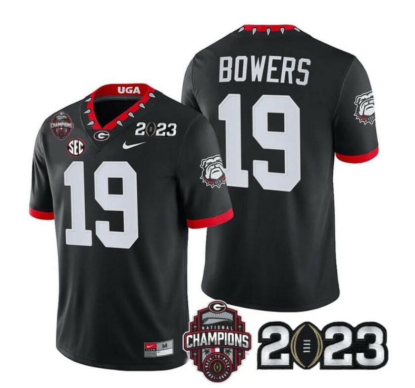 Georgia Bulldogs Brock Bowers Jersey #19 CFP National Champions Patch 2023 All Stitched Black