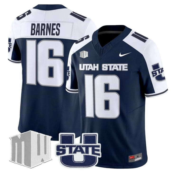 Bryson Barnes Jersey #16 Utah State Aggies 2025 Vapor Limited Stitched Navy Alter