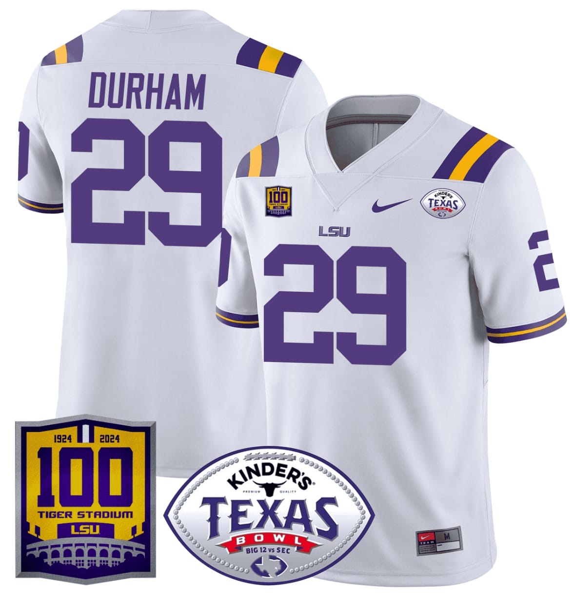 Caden Durham Jersey #29 LSU Tigers Texas Bowl Patch Football All Stitched