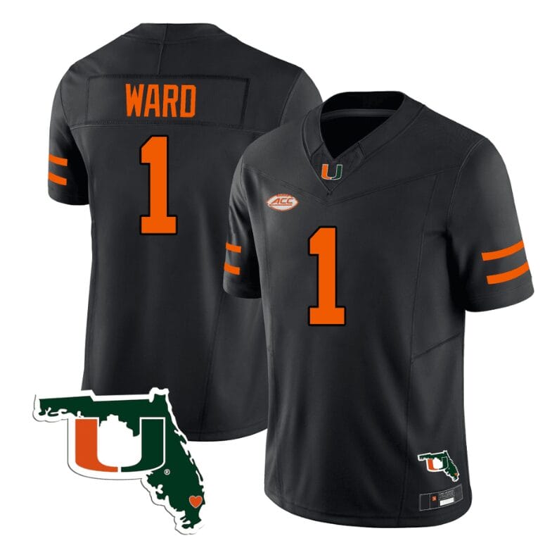 Cameron Ward Jersey #1 Miami Hurricanes Florida Map College Football Stitched Black