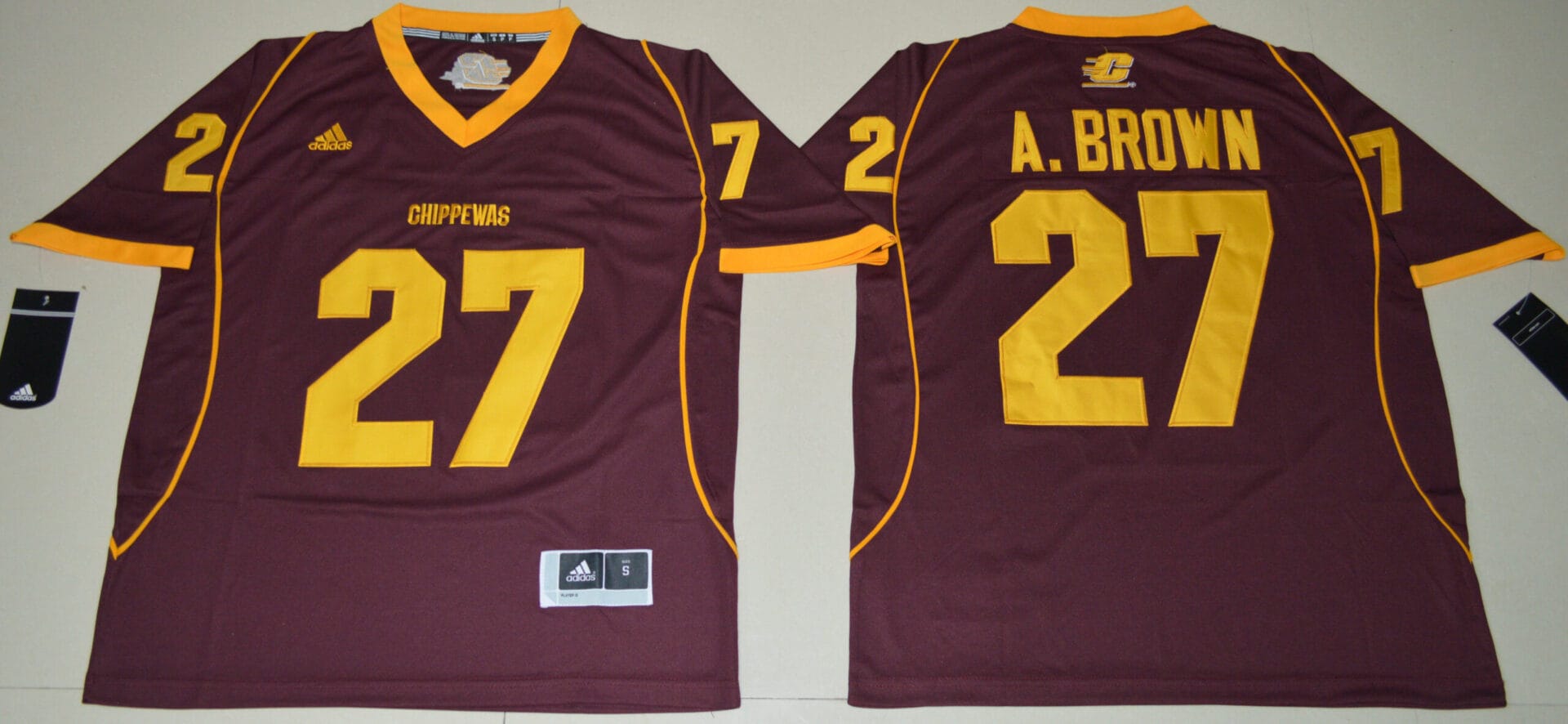 Celebrate your football fandom with this ncaa football jersey ! This Central Michigan Chippewas #27 Antonio Brown Football Jersey With Patch is available in various size men, women and youth and features a combination of stitched-embroidery. You’ll look just like your favorite ncaa football players when you rock this ncaa football jersey!