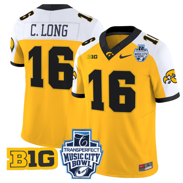 Chuck Long Jersey #16 Iowa Hawkeyes 2024 Music City Bowl Patch All Stitched Football