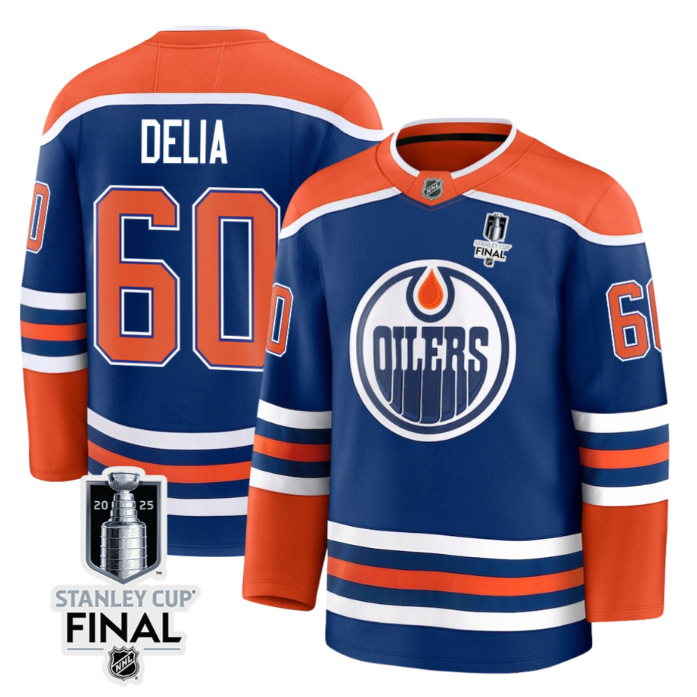 Collin Delia Jersey 60 Edmonton Oilers 2025 Stanley Cup Final Home Breakaway Stitched Hockey