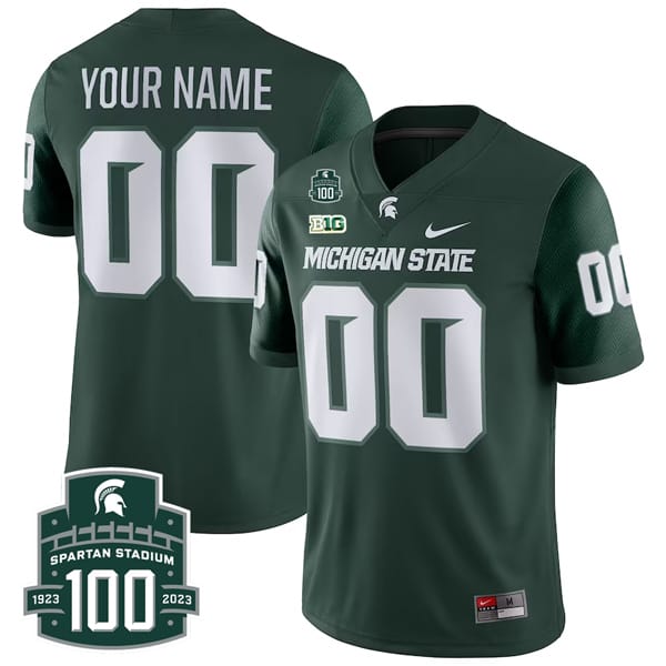In celebration of Spartans Stadium’s 100th anniversary, our custom Michigan State jerseys come with a special 100th Anniversary Patch. This limited-edition feature adds a commemorative touch to your jersey, making it a prized possession for any true Spartans fan. It’s a perfect way to honor the rich history and tradition of Michigan State football.