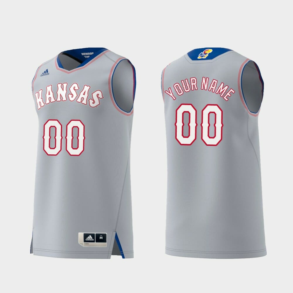 Celebrate your Basketball fandom with this Basketball jersey ! This Custom Name Number Kansas Jayhawks Gray Replica Swingman College Basketball Jersey is in various size men and features a combination of stitched-embroidery. You’ll look just like your favorite basketball players when you rock this basketball jersey!