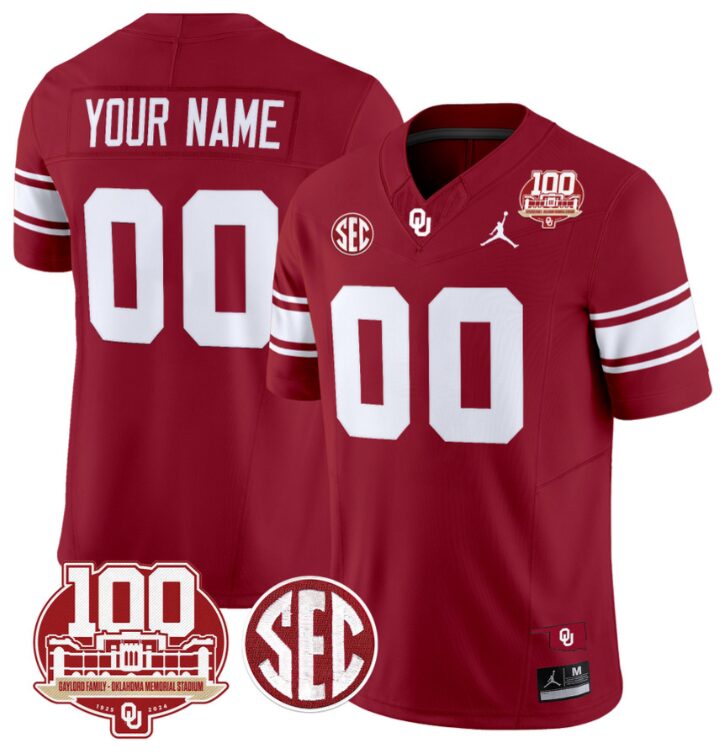 Custom Oklahoma Sooners Jersey Name and Number 100th Anniversary Patch Vapor Limited College Football Stitched Crimson