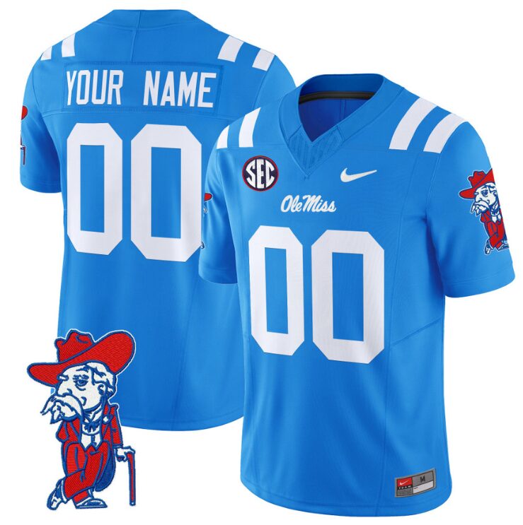 Custom Ole Miss Rebels Jersey Name and Number Vapor Limited College Football Stitched Powder Blue