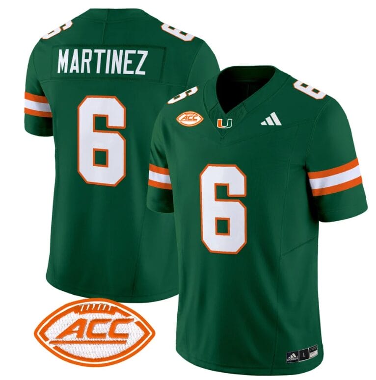 Damien Martinez Jersey #6 Miami Hurricanes Vapor Football Stitched Green