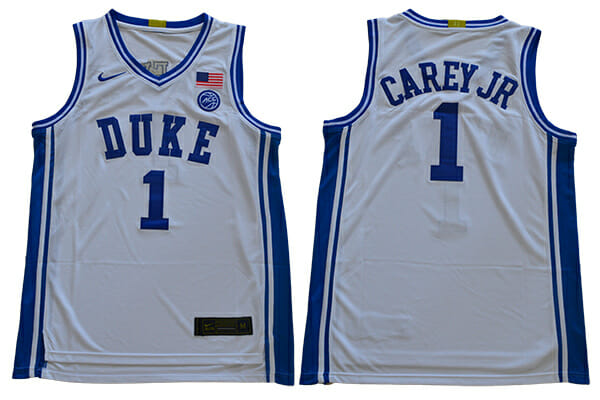 Make sure you are ready to celebrate another college basketball team victory on game day! This Duke Blue Devils #1 Carey jr Basketball NCAA Basketball Jersey White is available in various size and gender men college basketball jersey size and is a perfect way to let you join in on the fun. It boasts quality team colors and graphics so you can feel just like a true basketball team and show off your fandom!