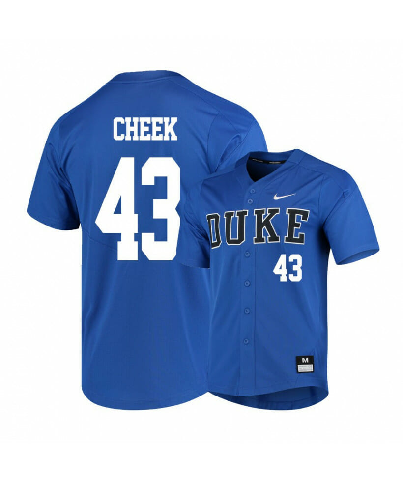 Make sure you are ready to celebrate another baseball team victory on game day! This Duke Blue Devils 43 Chase Cheek Blue Elite Baseball Jersey is available in various size and gender men, women, and youth baseball jersey size and is a perfect way to let you join in on the fun. It boasts quality team colors and graphics so you can feel just like a true baseball team and show off your fandom!