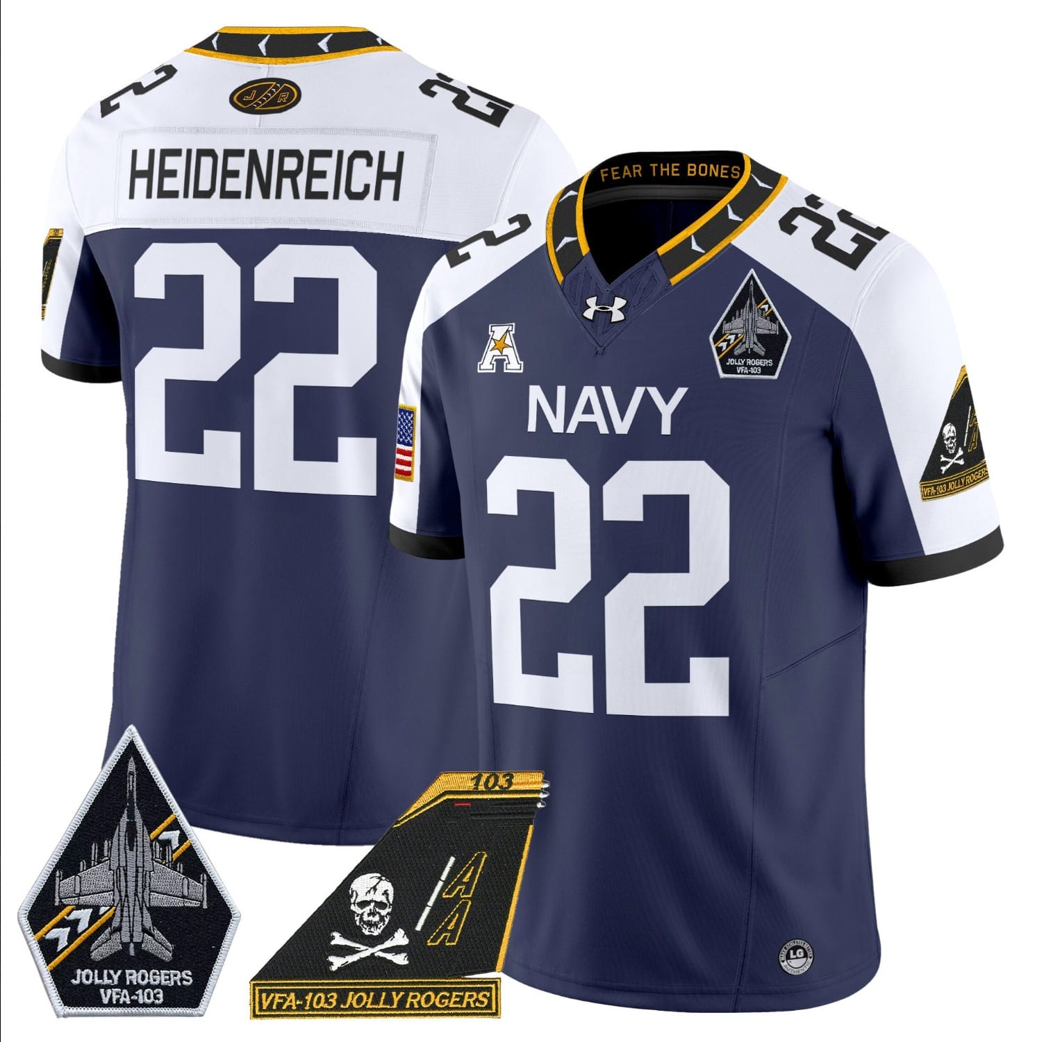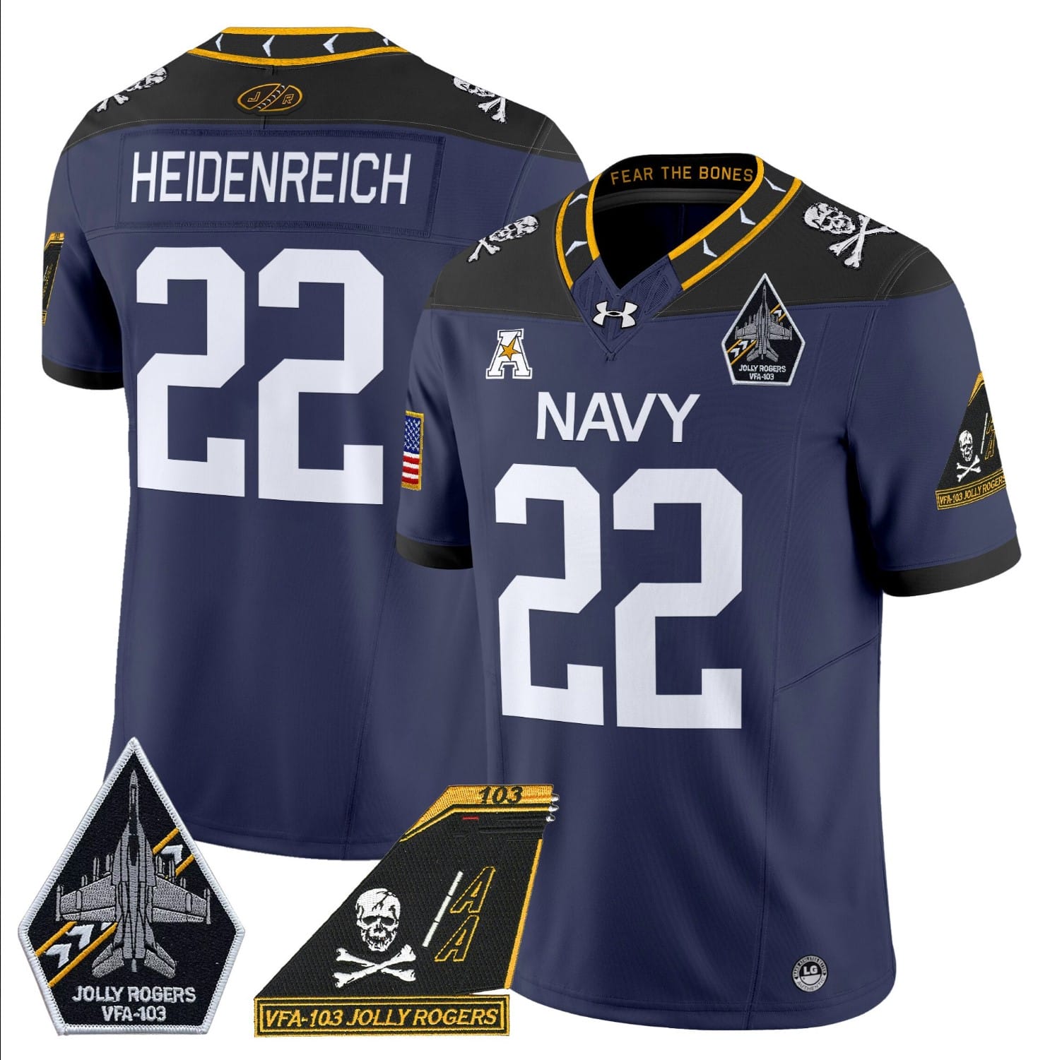 Eli Heidenreich Jersey #22 Navy Midshipmen 2024 Jolly Rogers Patch Stitched Football