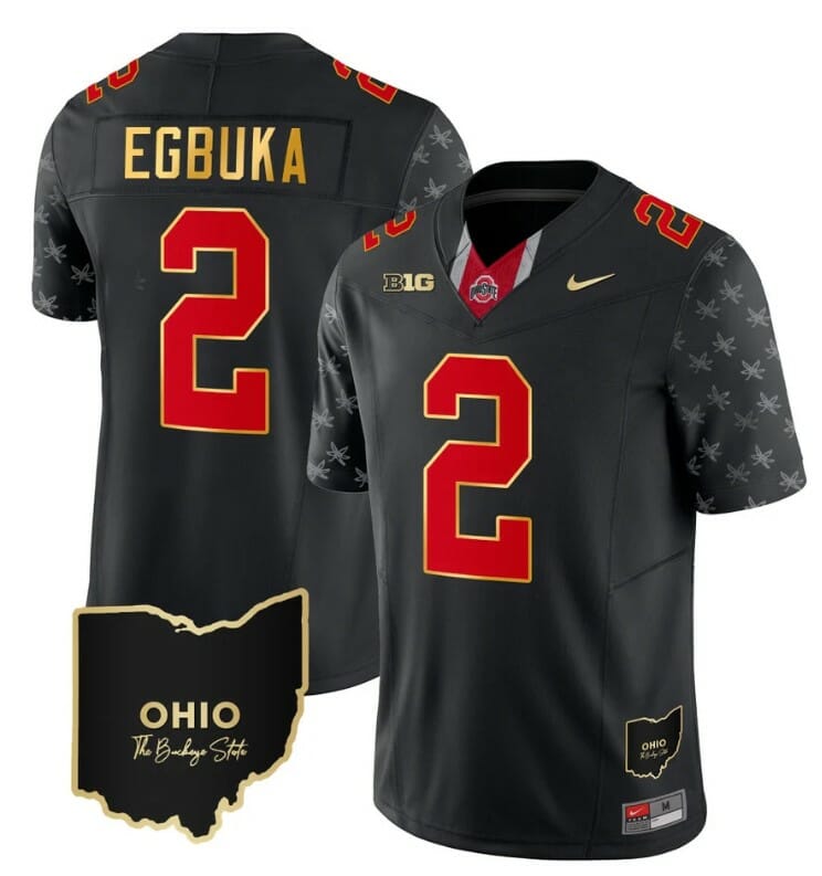 Ohio State Buckeyes Emeka Egbuka Jersey #2 College Football Stitched Alternate Black Gold Trim