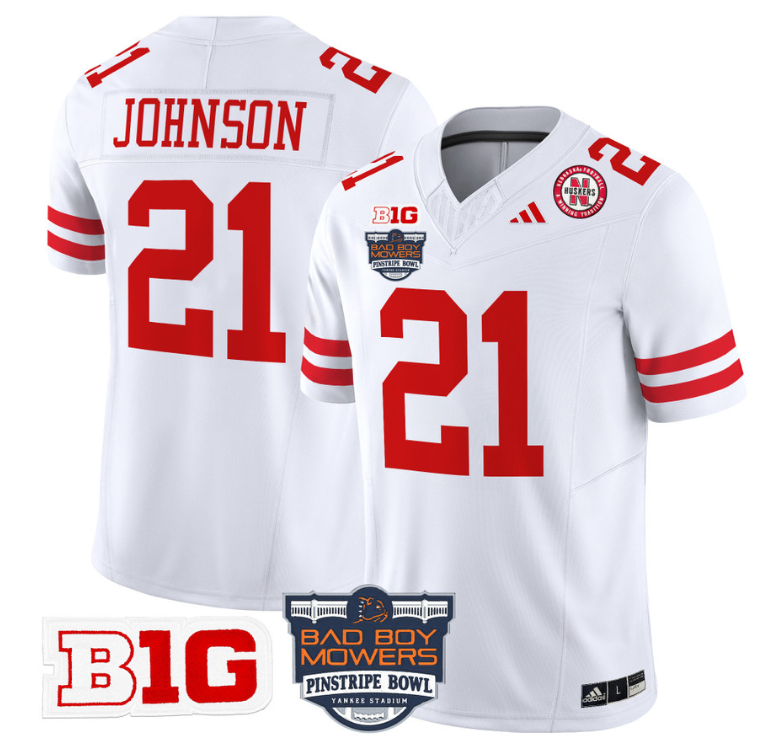 Emmett Johnson Jersey #21 Nebraska Cornhuskers 2025 Pinstripe Bowl Stitched Football