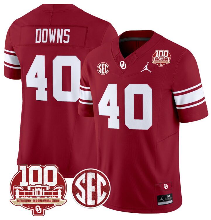 Ethan Downs Jersey #40 Oklahoma Sooners 100th Anniversary Patch Vapor Limited College Football Stitched Crimson
