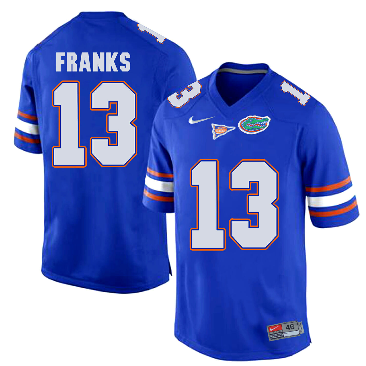 Celebrate your football fandom with this ncaa football jersey ! This Florida Gators #13 Feleipe Franks College Football Jersey Royal Blue Logo Patch is available in various size men, women and youth and features a combination of stitched-embroidery. You’ll look just like your favorite ncaa football players when you rock this ncaa football jersey!