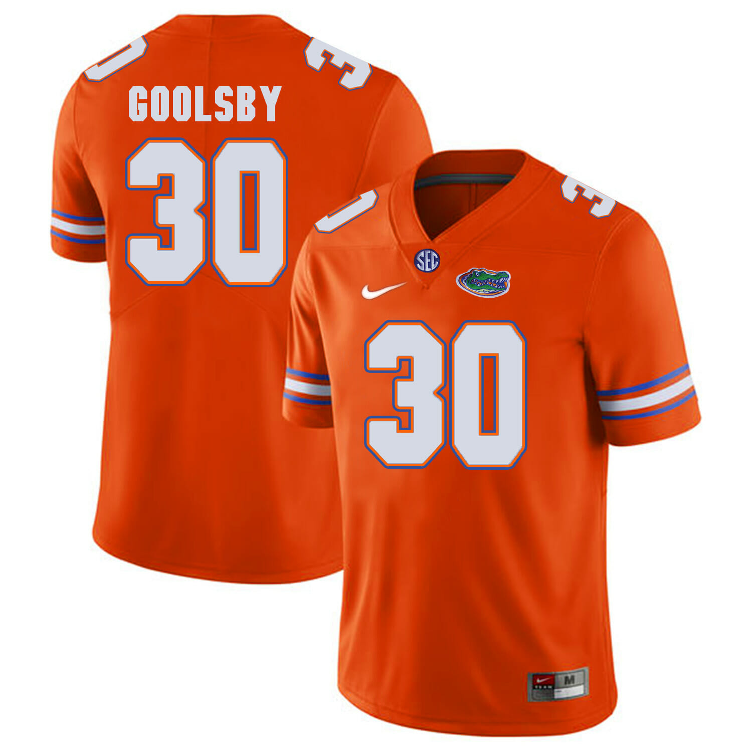 Celebrate your football fandom with this ncaa football jersey ! This Florida Gators #30 DeAndre Goolsby NCAA Football Jersey Orange Logo Patch is available in various size men, women and youth and features a combination of stitched-embroidery. You’ll look just like your favorite ncaa football players when you rock this ncaa football jersey!