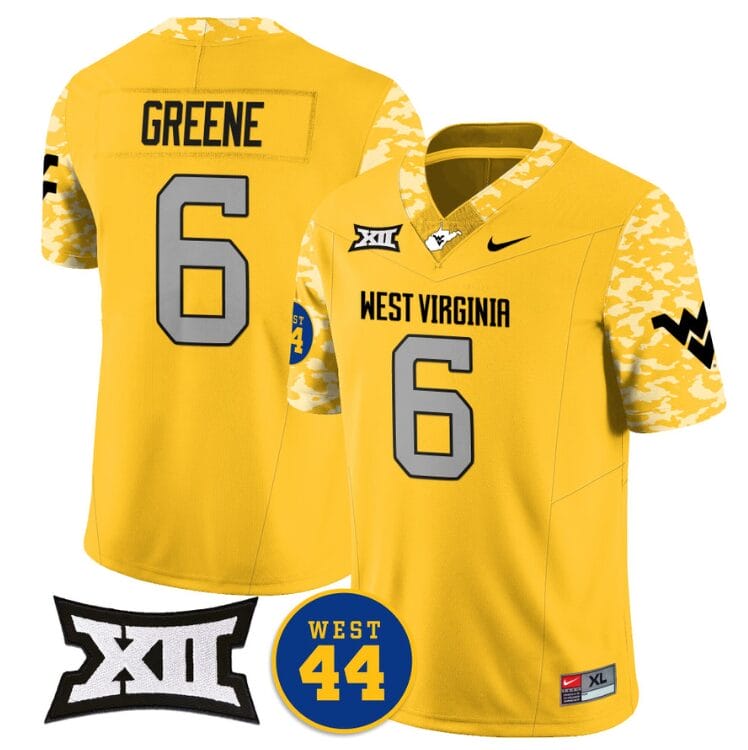 Garrett Greene Jersey #6 West Virginia Mountaineers 2024 Vapor Limited Football Honor Jerry West Stitched Goal