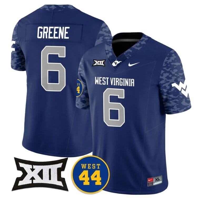 Garrett Greene Jersey #6 West Virginia Mountaineers 2024 Vapor Limited Football Honor Jerry West Stitched Navy