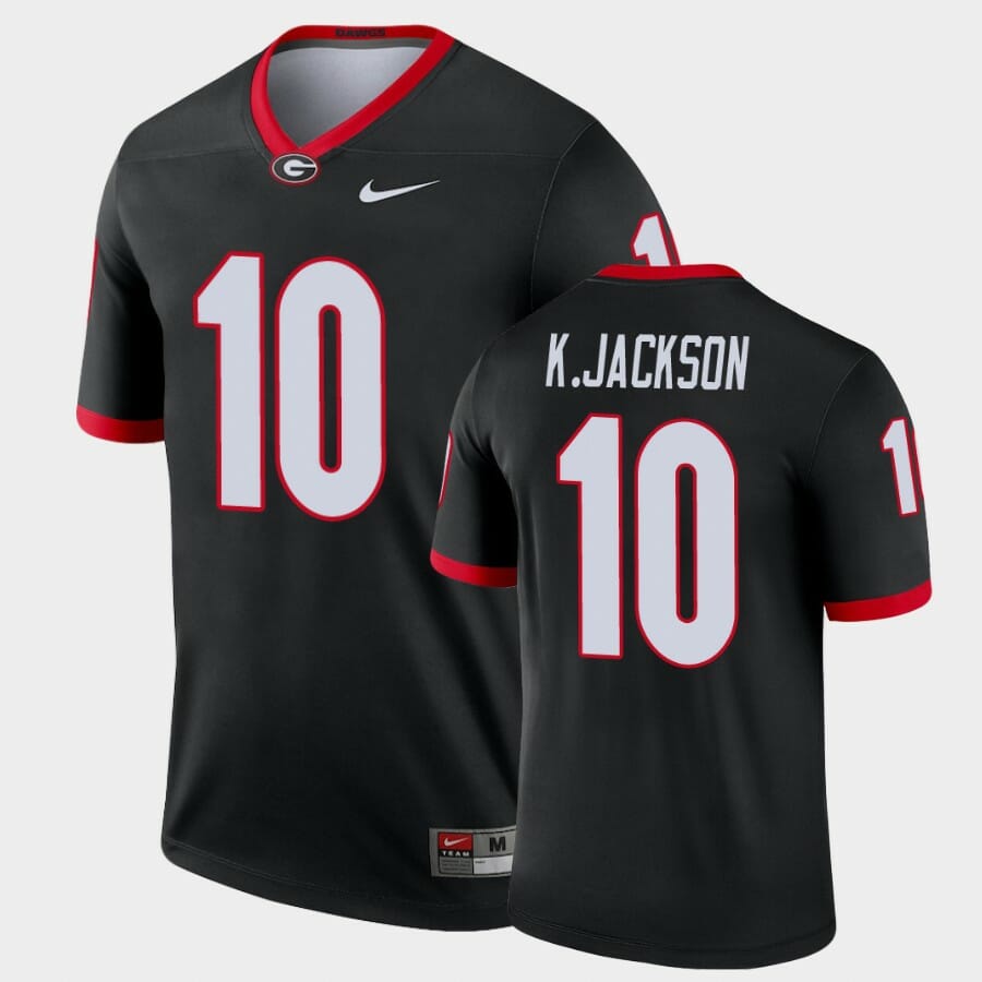 Celebrate your football fandom with this ncaa football jersey ! This Georgia Bulldogs #10 Kearis Jackson Black Legend Alternate Jersey is available in various size men, women and youth and features a combination of stitched-embroidery. You’ll look just like your favorite ncaa football players when you rock this ncaa football jersey!