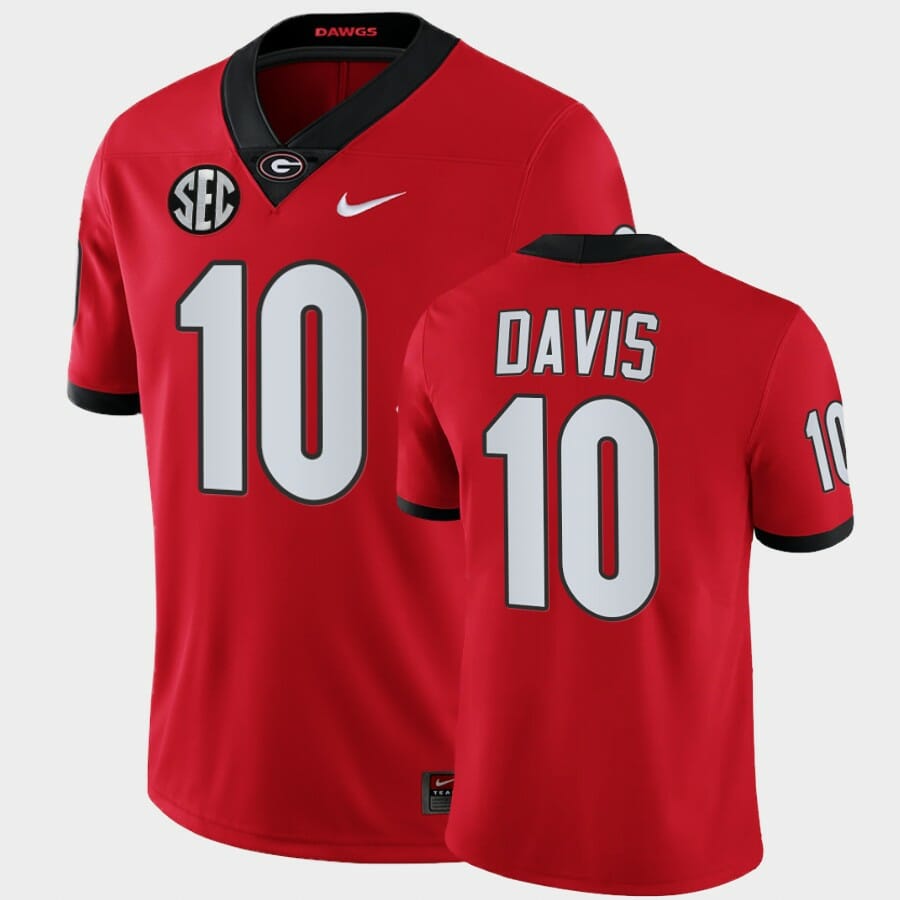 Celebrate your football fandom with this ncaa football jersey ! This Georgia Bulldogs #10 Thomas Davis Red College Football Alumni Jersey is available in various size men, women and youth and features a combination of stitched-embroidery. You’ll look just like your favorite ncaa football players when you rock this ncaa football jersey!