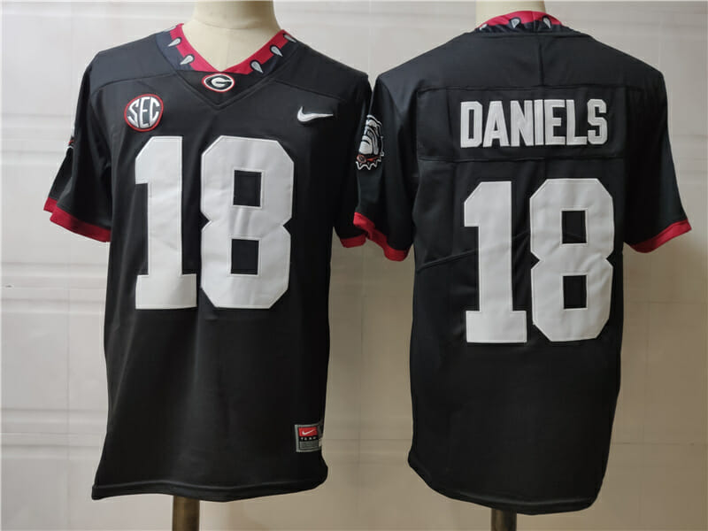 Celebrate your football fandom with this ncaa football jersey ! This Georgia Bulldogs #18 Daniels College Football Jersey Black is available in various size men, women and youth and features a combination of stitched-embroidery. You’ll look just like your favorite ncaa football players when you rock this ncaa football jersey!