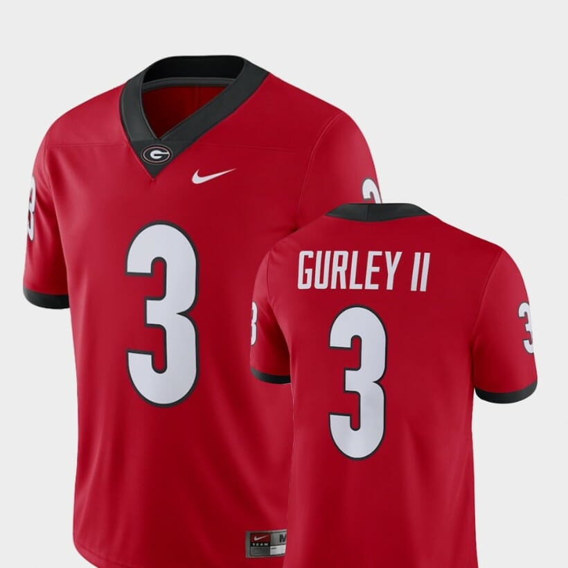 Celebrate your football fandom with this ncaa football jersey ! This Georgia Bulldogs #3 Todd Gurley II Alumni Football Game Player Red Jersey is available in various size men, women and youth and features a combination of stitched-embroidery. You’ll look just like your favorite ncaa football players when you rock this ncaa football jersey!