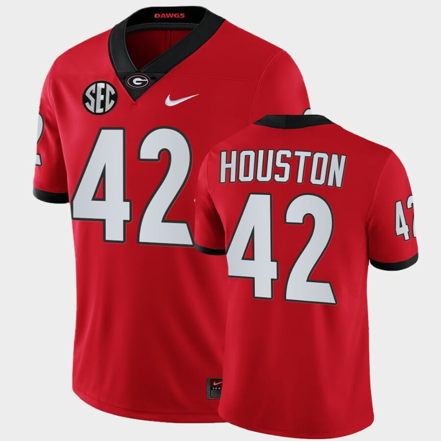 Celebrate your football fandom with this ncaa football jersey ! This Georgia Bulldogs #42 Justin Houston Red College Football Alumni Jersey is available in various size men, women and youth and features a combination of stitched-embroidery. You’ll look just like your favorite ncaa football players when you rock this ncaa football jersey!
