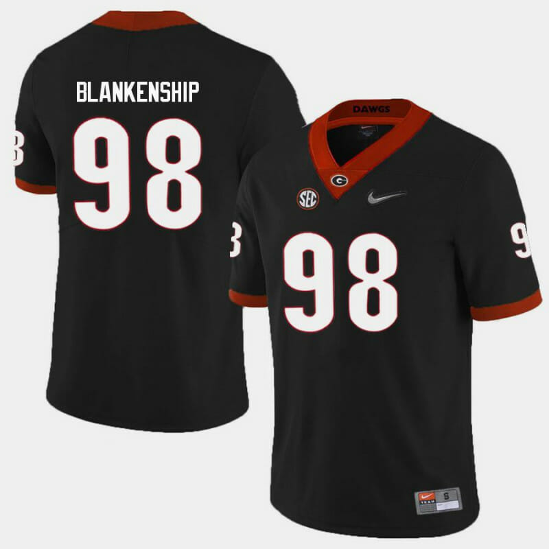 Celebrate your football fandom with this ncaa football jersey ! This Georgia Bulldogs #98 Rodrigo Blankenship College Football Jersey Limited Black is available in various size men, women and youth and features a combination of stitched-embroidery. You’ll look just like your favorite ncaa football players when you rock this ncaa football jersey!