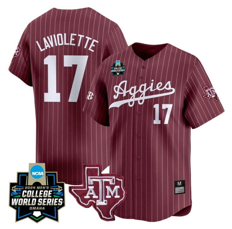 Jace Laviolette Jersey #17 Texas AM Aggies 2024 College World Series Vapor Premier Limited NCAA Baseball Stitched Maroon Pinstripe