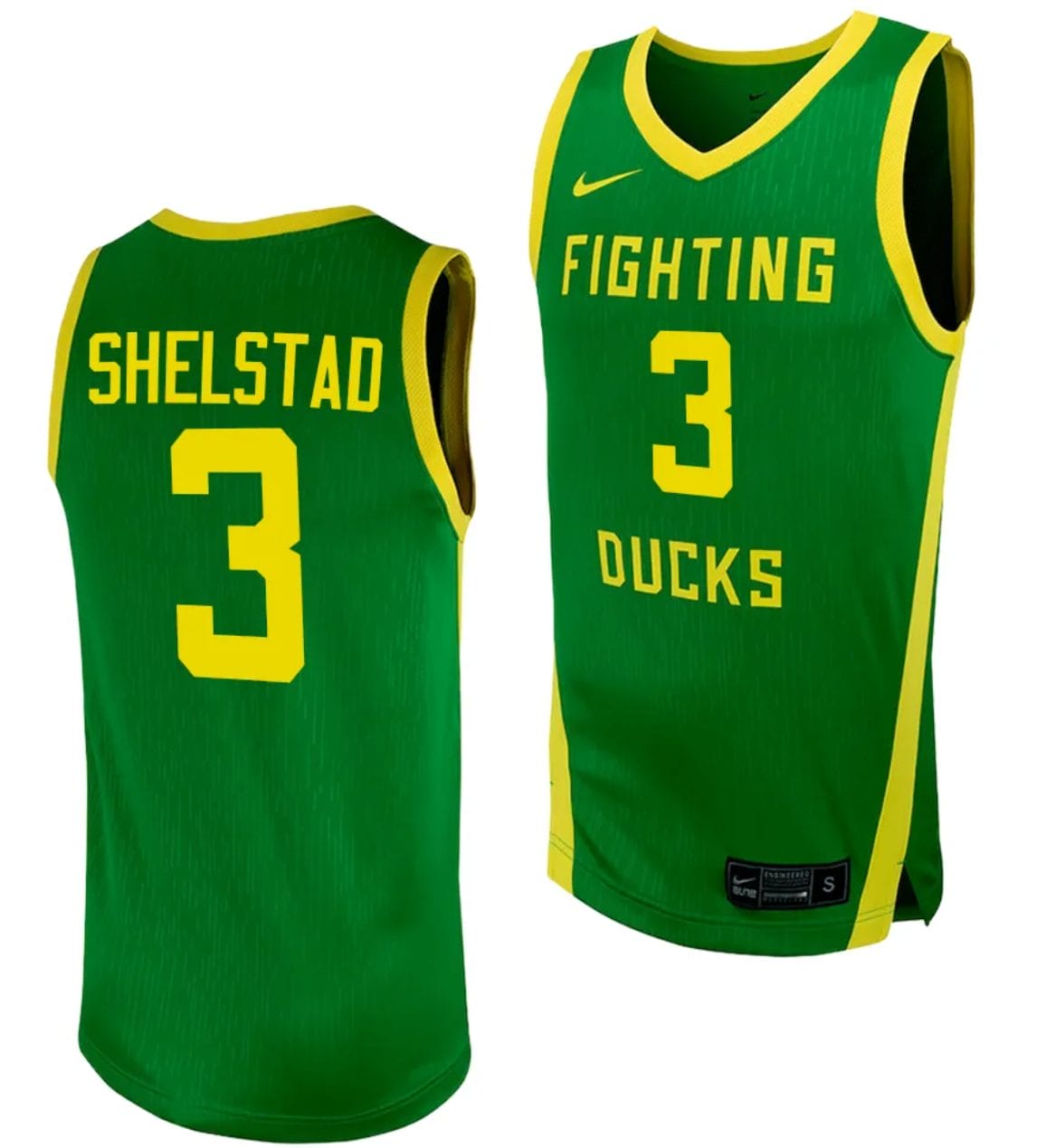 Jackson Shelstad Jersey #3 Oregon Ducks Replica College Basketball uniform Green - Tagless Collar: The tagless collar offers clean comfort, preventing irritation during extended wear.