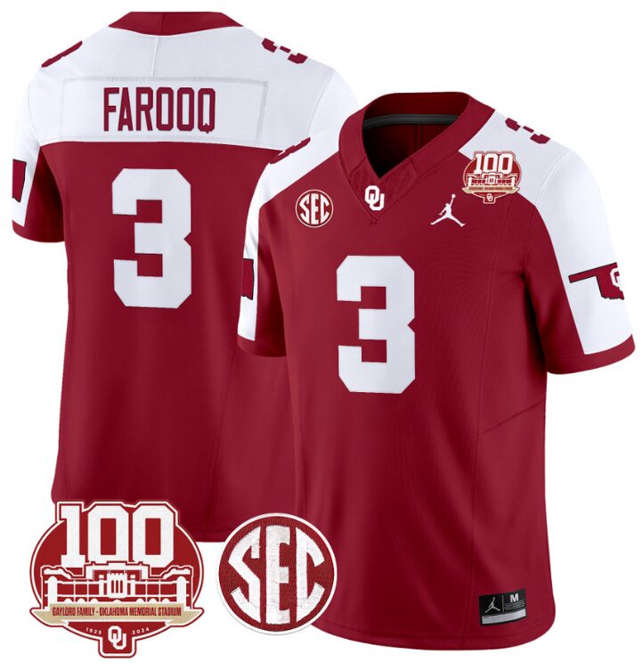 Jalil Farooq Jersey #3 Oklahoma Sooners 100th Anniversary Patch Vapor Limited College Football Stitched Crimson Alternate