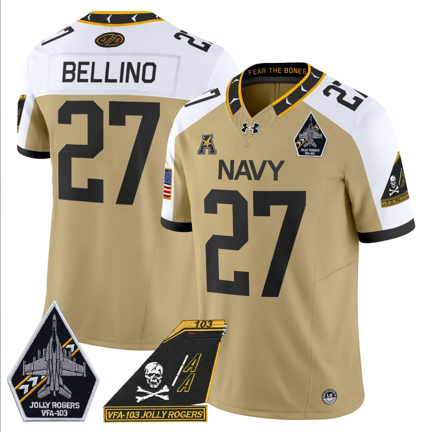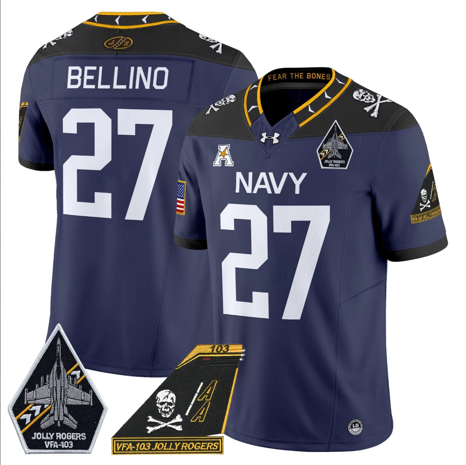 Joe Bellino Jersey #27 Navy Midshipmen 2024 Jolly Rogers Patch Stitched Football